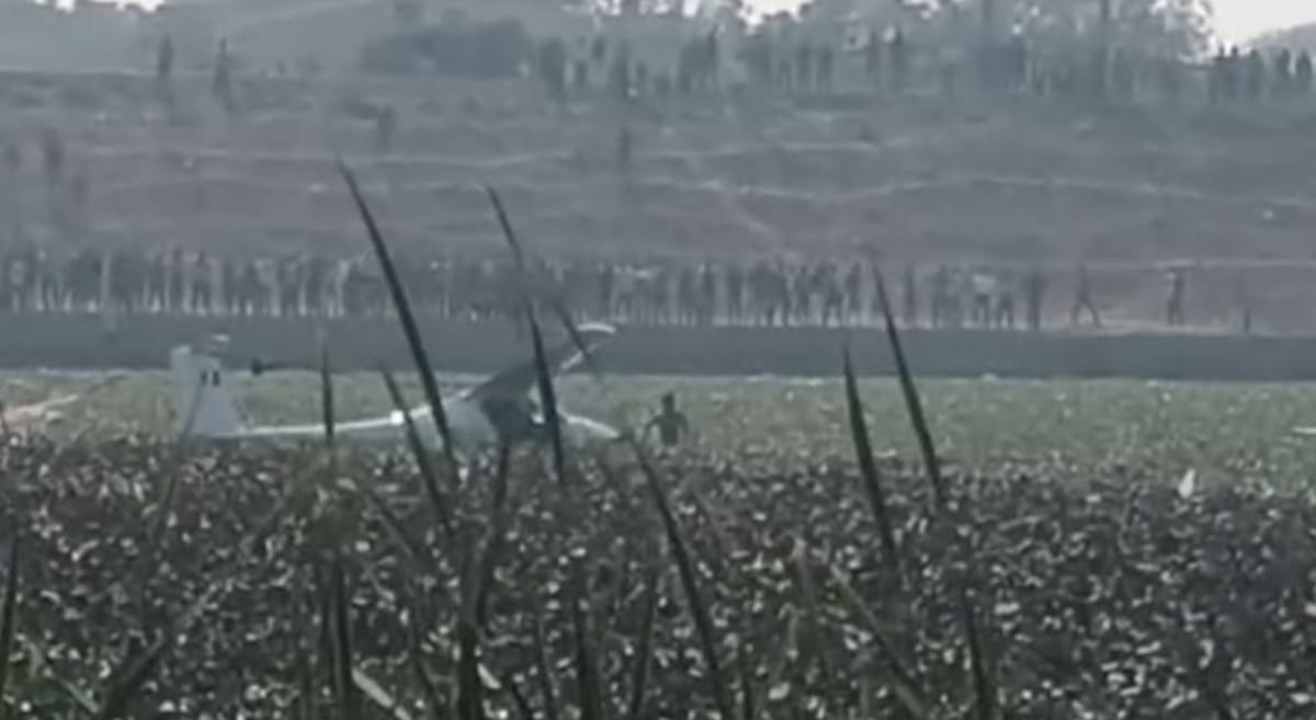 വ്യോമസേനയുടെ മൈക്രോലൈറ്റ് വിഭാഗത്തിൽപ്പെട്ട ചെറിയ വിമാനമാണ് അപകടത്തിൽപ്പെട്ടത്. എഞ്ചിൻ തകരാറിനെ തുടർന്ന് വിമാനത്തിന്റെ നിയന്ത്രണം നഷ്ടമാകുകയായിരുന്നു.