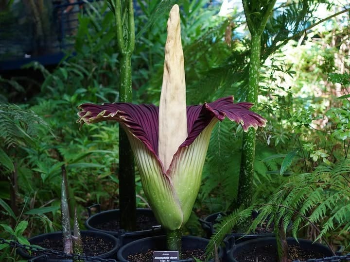 ഏതാണ്ട് 1.5 മീറ്റര് ഉയരമുള്ള ഈ ചെടി വിരിഞ്ഞു കഴിഞ്ഞാല് 24 മുതല് 48 മണിക്കൂര് വരെ മാത്രമേ ആ ഗന്ധം നിലനില്ക്കുകയുള്ളൂ.വംശനാശഭീഷണി നേരിടുന്ന ഈ ചെടിയെ സംരക്ഷിക്കുന്നതിനുള്ള ദീര്ഘകാല ശ്രമങ്ങളുടെ ഭാഗമായി 2006-ല് ലഭിച്ച വിത്തുകളില് നിന്നാണ് ഇത് വളര്ത്തിയെടുത്തത്.2021-ന് ശേഷം ഇത് രണ്ടാം തവണയാണ് ഈ സസ്യം പുഷ്പിക്കുന്നത്.ഈ അപൂര്വ്വ പ്രതിഭാസം കാണാന് ആയിരക്കണക്കിന് സന്ദര്ശകര് എത്തുമെന്നാണ് അധികൃതര് കരുതുന്നത്.പൂവ് വിരിയുന്ന ദിവസങ്ങളില് കണ്സര്വേറ്ററിയിലേക്ക് പ്രവേശനം സജന്യമായിരിക്കും.