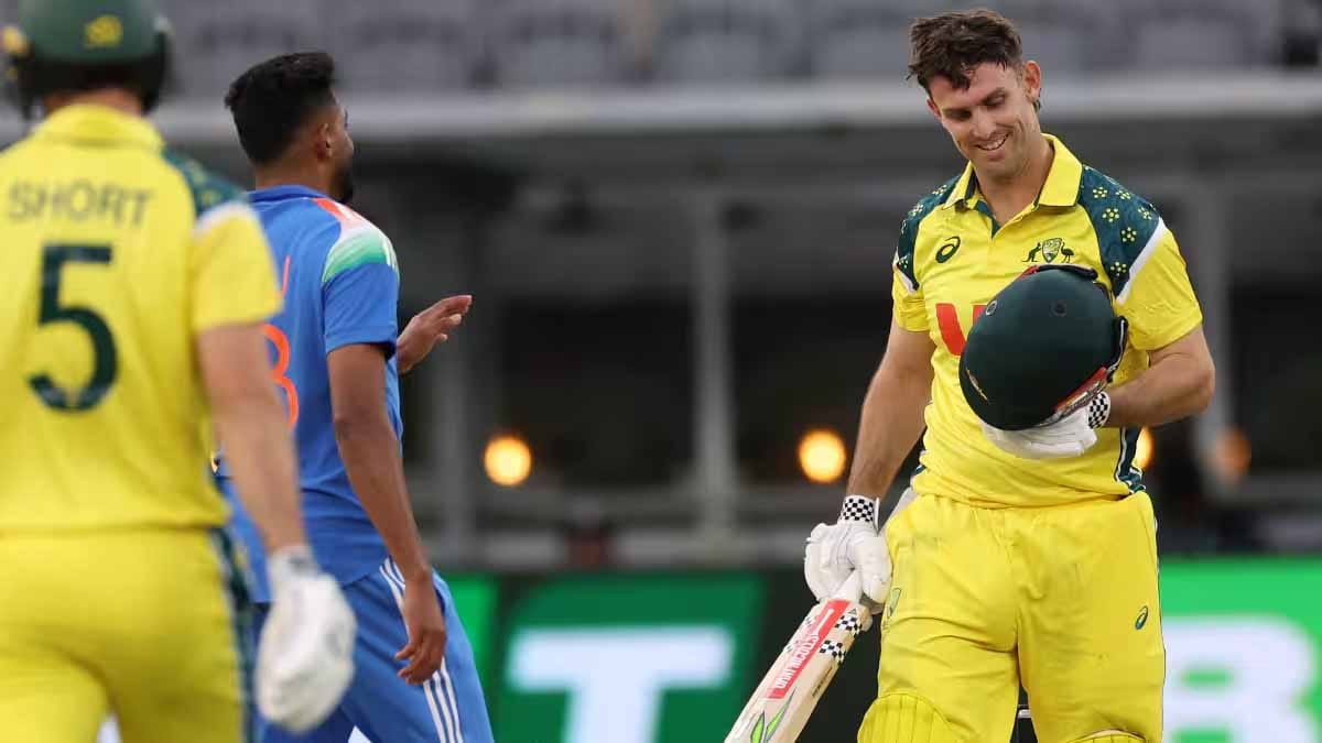 മറുപടി ബാറ്റിങ്ങിന് ഇറങ്ങിയ ഓസ്ട്രേലിയയുടെ പ്രകടനത്തിനു മുന്നില് ഇന്ത്യന് ബോളര്മാര് മുട്ടുകുത്തുകയായിരുന്നു. മൂന്നു സിക്സും രണ്ടു ഫോറുമായി മിച്ചല് മാര്ഷ് ഓസ്ട്രേലിയയെ വിജയപാതയിലെത്തിച്ചു. വിക്കറ്റ് കീപ്പര് ജോഷ് ഫിലിപ്പ് (37), ഓപ്പണറായി ഇറങ്ങിയ മാറ്റ് റെന്ഷോ (21) എന്നിവരും മികച്ച പ്രകടനമാണ് പുറത്തെടുത്തത്.