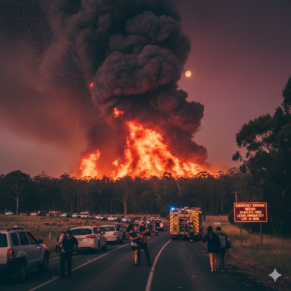 വിക്ടോറിയയിലെ ഓട്വേ റേഞ്ചസ് (Otway Ranges),ഗ്രാംപിയന്സ് മേഖലകളില് തീ പടരുന്നതിനാല് നൂറുകണക്കിന് കുടുംബങ്ങളോട് വീടുകളില് നിന്ന് ഉടന് ഒഴിഞ്ഞുപോകാമന് അധികൃതര് നിര്ദ്ദേശം നല്കി.രക്ഷപ്പെടാന് ഇപ്പോള് മാത്രമാണ് സമയം,വൈകിയാല് ജീവന് അപകടത്തിലാകും എന്ന് വിക്ടോറിയന് കണ്ട്രി ഫയര് അതോറിറ്റി (CFA) മുന്നറിയിപ്പ് നല്കി.പലയിടങ്ങളിലും പുകപടലം കാരണം ആകാശം ചുവന്ന നിറത്തിലായി മാറിയിരിക്കുകയാണ്.