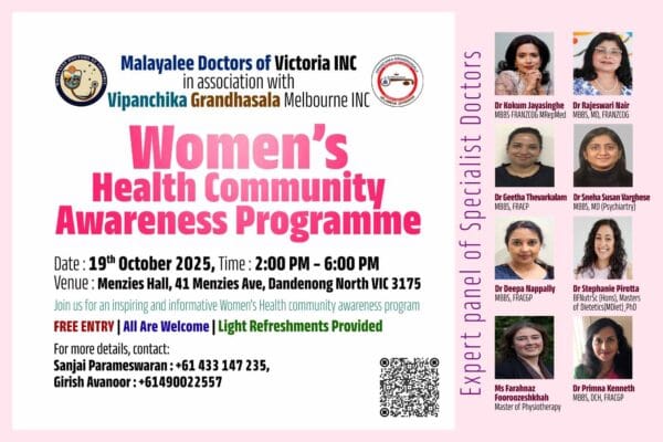 Australia NewsKerala NewsNews മെല്ബണില് വിമന് ഫസ്റ്റ് വനിതാ ആരോഗ്യ ബോധവല്ക്കരണ പരിപാടി ഒക്ടോബര് 19ന് 4 months ago3 months ago1 mins Read More