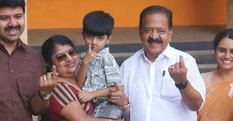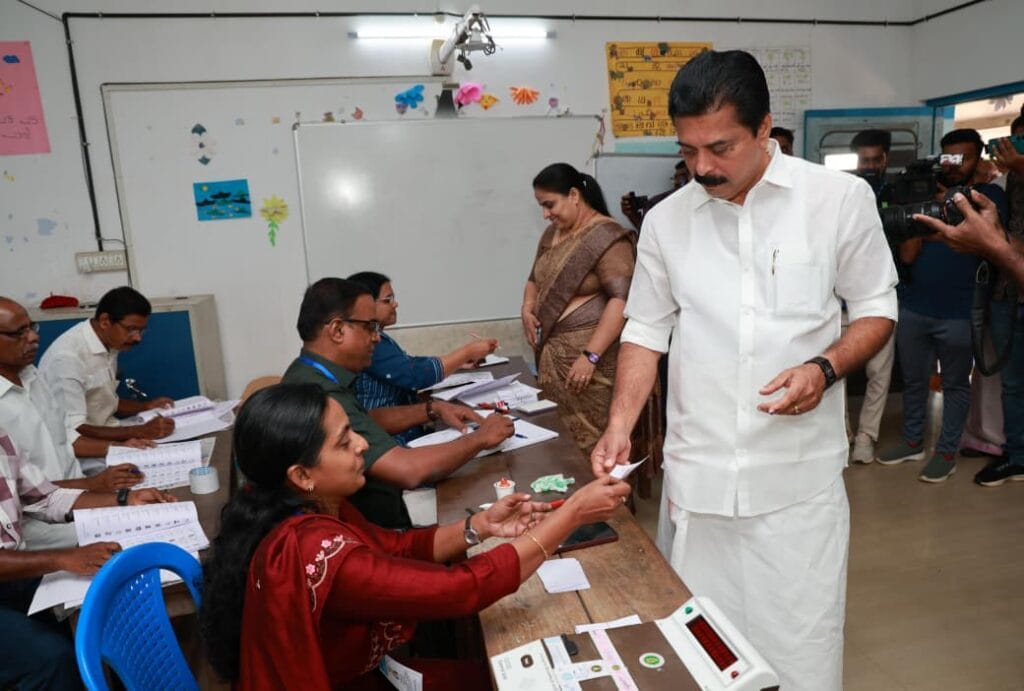 രമേശ് ചെന്നിത്തല വോട്ട് രേഖപ്പെടുത്തിയ ശേഷം
