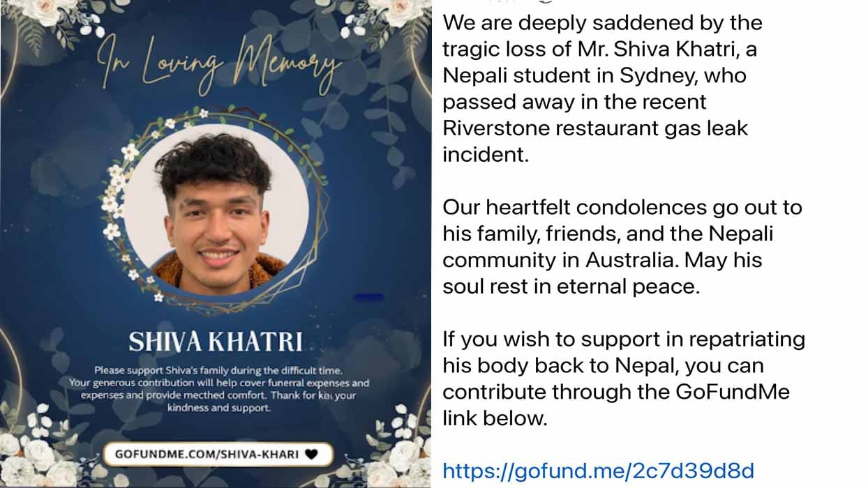 റിവര്സ്റ്റോണിലെ ഗ്യാസ് ലീക്ക് ദുരന്തത്തില് ജീവന് നഷ്ടമായ നേപ്പാളി വിദ്യാര്ഥിക്കു വേണ്ടി ഒരു കൈ സഹായം