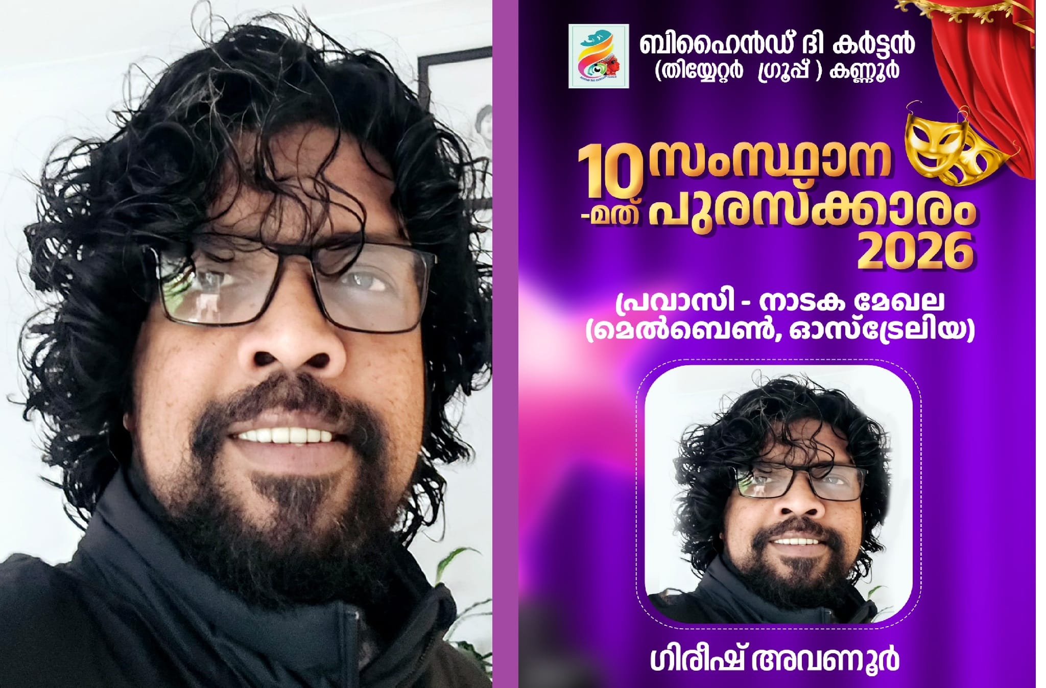 കണ്ണൂര്: ബിഹൈന്ഡ് ദി കര്ട്ടന് തിയേറ്റര് ഗ്രൂപ്പ് കണ്ണൂരിന്റെ പത്താമത് സംസ്ഥാനതല പുരസ്കാരത്തിന് ഗിരീഷ് അവണൂര് അര്ഹനായി. വിദേശ നാടുകളിലും പ്രവാസ മേഖലകളിലും മലയാള നാടകത്തെ പരിചയപ്പെടുത്തുന്നതിനും പരിപോഷിപ്പിക്കുന്നവര്ക്കുമായി ഏര്പ്പെടുത്തിയ പ്രവാസി മേഖലാ നാടക പുരസ്കാരത്തിനാണ് ഇദ്ദേഹം തെരഞ്ഞെടുക്കപ്പെട്ടത്.