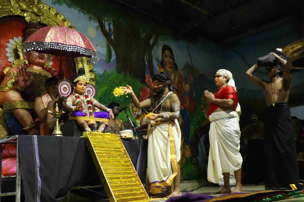 കഥകളി പ്രേമികളെ ഏറെ ആകർഷിച്ചത്, 61 വയസുകാരനായ കലാമണ്ഡലം ബാലകൃഷ്ണൻ മുതൽ 7 വയസുകാരനായ അദ്വൈത് പ്രശാന്ത് വരെയുള്ള മൂന്ന് തലമുറയിലെ കലാകാരന്മാരുടെ അർപ്പണമായിരുന്നു. കലാമണ്ഡലം പ്രശാന്തിന്റെ നേതൃത്വത്തിൽ നടന്ന അവതരണത്തിൽ മഹിഷിയായി അദ്ദേഹം തന്നെ വേഷമിട്ടു. മണികണ്ഠനെ അവതരിപ്പിച്ചത് അഭിജിത്ത് പ്രശാന്താണ്. മധു വാരണാസി, കലാമണ്ഡലം നിധിൻ ബാലചന്ദ്രൻ, കലാമണ്ഡലം ആരോമൽ, അഭിഷേക് മണ്ണൂർക്കാവ് എന്നിവരും മറ്റ് പ്രധാന വേഷങ്ങളിലെത്തി.