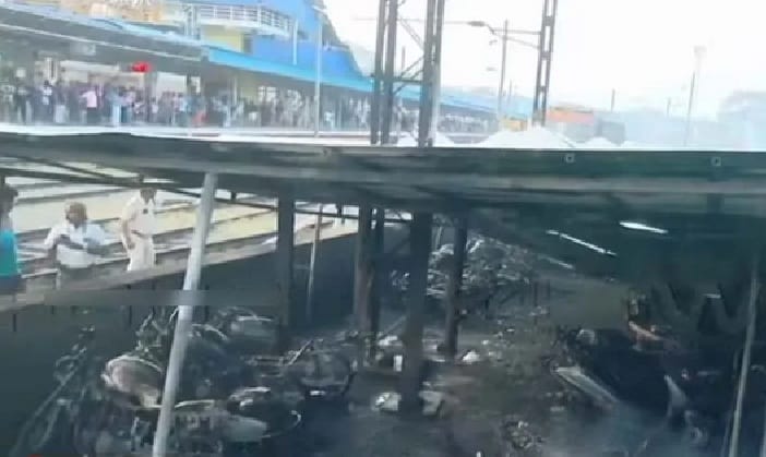 രാവിലെ 6.45 ഓടെ റെയില്വേ സ്റ്റേഷനിലെ രണ്ടാമത്തെ ഗേറ്റിനടുത്തായാണ് തീപിടിച്ചത്. ആദ്യം രണ്ട് ബൈക്കുകള്ക്ക് തീപിടിക്കുകയും പിന്നീട് അത് പടരുകയായിരുന്നെന്നുമാണ് വിവരങ്ങള്. ഇലക്ട്രിക് സ്കൂട്ടറിനാണ് ആദ്യം തീപിടിച്ചതെന്നും പറയപ്പെടുന്നു. രണ്ടാം ഗേറ്റിലെ ടിക്കറ്റ് കൗണ്ടറും അവിടെ നിര്ത്തിയിട്ടിരുന്ന ഇന്സ്പെക്ഷന് വാഹനവും കത്തി നശിച്ചു.