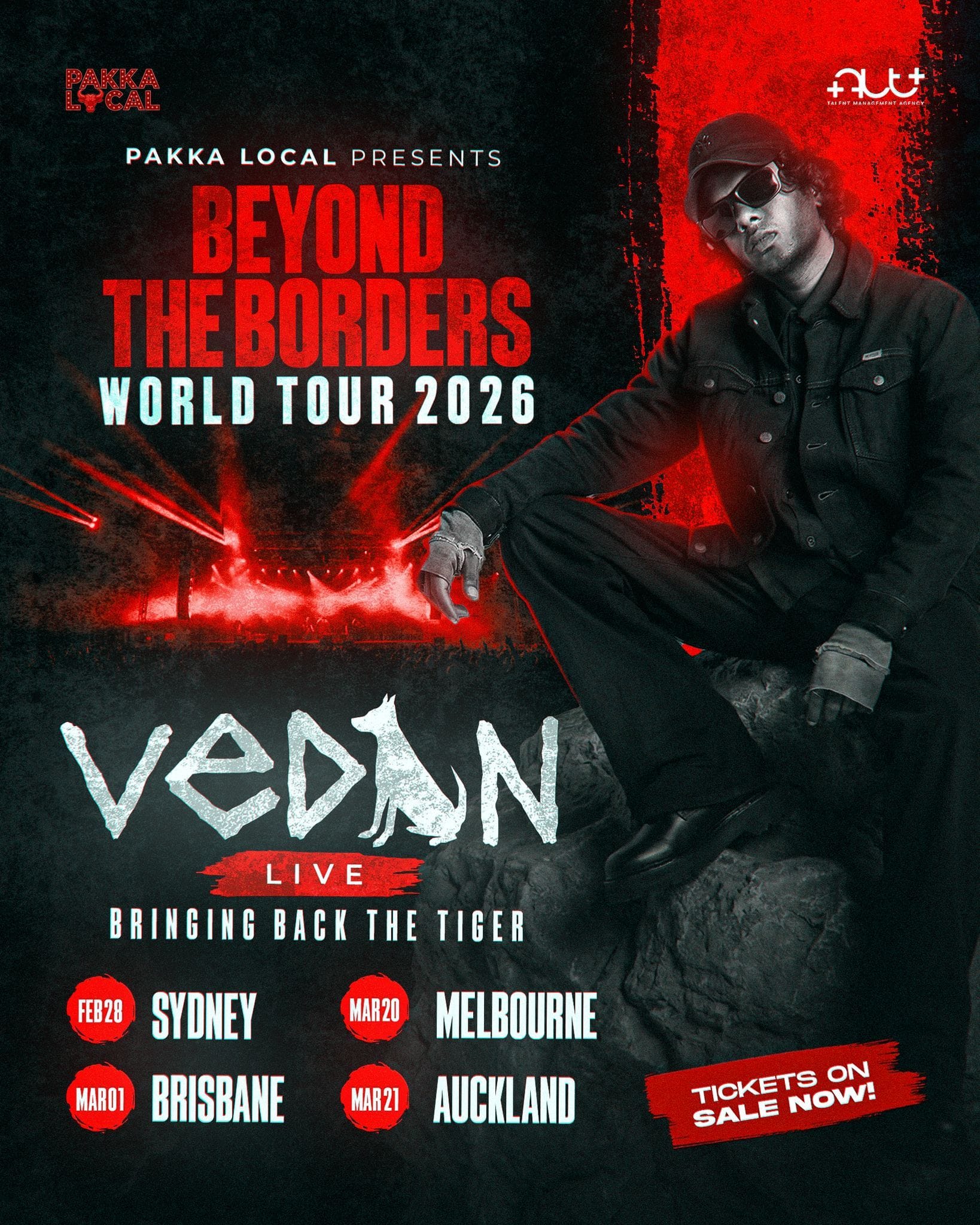 മാര്ച്ച് 1-ന് ബ്രിസ്ബേന്, മാര്ച്ച് 20-ന് മെല്ബണ്, മാര്ച്ച് 21-ന് ഓക്ലാന്ഡ് എന്നിവിടങ്ങളിലും വേടന് തന്റെ തകര്പ്പന് പ്രകടനം കാഴ്ചവെക്കും. തന്റെ മൂര്ച്ചയുള്ള വരികളിലൂടെയും ശക്തമായ സ്റ്റേജ് സാന്നിധ്യത്തിലൂടെയും ആരാധകരെ ആവേശം കൊള്ളിക്കുന്ന വേടന്റെ ഈ ലൈവ് ഷോകള്ക്കായുള്ള ടിക്കറ്റ് ബുക്കിംഗ് ഇപ്പോള് ആരംഭിച്ചു കഴിഞ്ഞു.ദക്ഷിണേന്ത്യന് ഹിപ്-ഹോപ്പ് സംഗീതത്തെ പുതിയ തലങ്ങളിലേക്ക് എത്തിക്കുന്ന ഈ അവിസ്മരണീയമായ സംഗീത വിരുന്നില് പങ്കുചേരാന് ഇപ്പോള് തന്നെ ടിക്കറ്റുകള് ഉറപ്പാക്കണമെന്ന് സംഘാടകര് അറിയിച്ചു