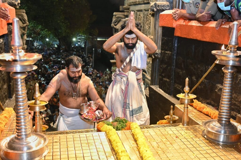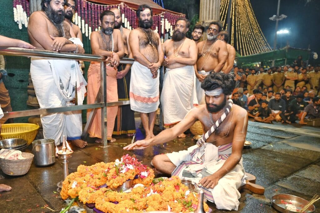 പൂജയുടെ ഭാഗമായി പതിനെട്ടാംപടി കഴുകി വൃത്തിയാക്കി മധ്യഭാഗത്തായി പട്ടുവിരിച്ചു. പട്ടിന്റെ ഇരുവശത്തും വലിയ ഹാരങ്ങള് കൊണ്ട് അലങ്കരിച്ചു. പതിനെട്ടു പടികളില് ഇരുവശത്തും നിലവിളക്ക് തെളിച്ചു. പടികളില് പൂജാദ്രവ്യങ്ങളും വച്ചു. പിന്നീട് ഓരോ പടികളിലും കുടികൊള്ളുന്ന മലദൈവങ്ങള്ക്ക് പൂജ നടത്തി. ഓരോ പടിയിലും ദേവചൈതന്യം ആവാഹിച്ചിട്ടുണ്ടെന്നാണ് വിശ്വാസം. ശബരിമല അടക്കമുള്ള പതിനെട്ട് മലകളെയാണ് പടികള് പ്രതിനിധാനം ചെയ്യുന്നതെന്നാണ് സങ്കല്പം