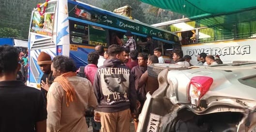 റാന്നി: പത്തനംതിട്ട റാന്നിക്ക് സമീപം തുലാപ്പള്ളിയില് ശബരിമല തീര്ഥാടകര് സഞ്ചരിച്ചിരുന്ന ബസ് നിയന്ത്രണം വിട്ടുണ്ടായ അപകടത്തില് മൂന്ന് പേര്ക്ക് ഗുരുതര പരുക്ക്. തുലാപ്പള്ളി ആലപ്പാട്ട് ജംക്ഷനില് ഇന്ന് രാവിലെ 7.45ഓടെയായിരുന്നു അപകടം. തമിഴ്നാട്ടില് നിന്നുള്ള തീര്ഥാകര് സഞ്ചരിച്ചിരുന്ന ബസാണ് തുലാപ്പള്ളി ഇറക്കത്ത് നിയന്ത്രണം വിട്ടത്. തുടര്ന്ന് ബസ് രണ്ട് കാറുകളിലും ഒരു ടൂറിസ്റ്റ് ബസിലും ഇടിക്കുകയായിരുന്നു. അപകടത്തില്പ്പെട്ട വാഹനങ്ങളിലെല്ലാം ശബരിമല തീര്ഥാടകരാണ് സഞ്ചരിച്ചിരുന്നത്.