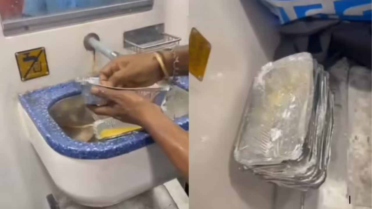 ന്യൂഡല്‍ഹി: ട്രെയിനിലെ ഫുഡ് കണ്ടെയ്‌നറുകള്‍ കാറ്ററിങ് ജീവനക്കാര്‍ വീണ്ടും ഉപയോഗിക്കുന്നതിനായ കഴുകുന്ന ദൃശ്യങ്ങള്‍ പുറത്ത്. ഇവ പ്രചരിച്ചതിനു പിന്നാലെ പ്രതികരണവുമായി റെയില്‍വേ നേരിട്ട് രംഗത്തെത്തി. തമിഴ്‌നാട്ടില്‍ നിന്നു ബീഹാറിലേക്കു പോയ അമൃത് ഭാരത് എക്‌സ്പ്രസ് ട്രെയിനിലാണ് സംഭവം നടന്നിരിക്കുന്നത്.