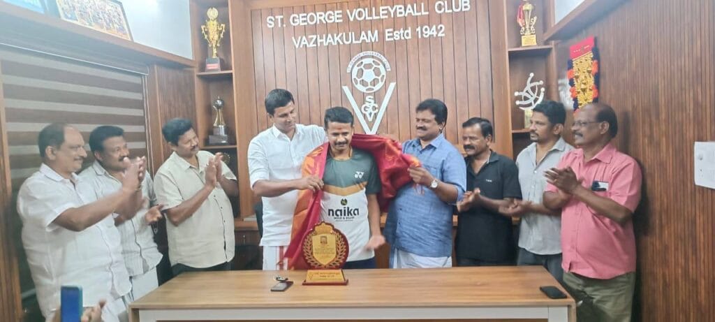 മൂവാറ്റുപുഴ: മൂവാറ്റുപുഴ പേഴക്കാപ്പിള്ളിയില് കിണറ്റില് വീണ നാലു വയസ്സുകാരനെ, സ്വന്തം ജീവന് പോലും തൃണവല്ഗണിച്ചു കൊണ്ട് കിണറ്റിലിറങ്ങി രക്ഷപ്പെടുത്തിയ മൂവാറ്റുപുഴ പോലീസ് സംഘത്തിലെ അംഗവും സെന്റ് ജോര്ജ് വോളിബോള് ക്ലബ്ബിലെ കളിക്കാരനുമായ സീനിയര് സിപിഒ രഞ്ജിത്ത് രാജന് സെന്റ് ജോര്ജ് വോളിബോള് ക്ലബ് സ്വീകരണം ഒരുക്കി. ക്ലബ്ബ് ഓഫീസില് ചേര്ന്ന യോഗത്തില് ക്ലബ്ബ് പ്രസിഡണ്ട് തോമസ് വര്ഗീസ് താണിക്കല് പൊന്നാട അണിയിക്കുകയുംക്ലബ്ബിന്റെ ആദരം രഞ്ജിത്തിന് സമര്പ്പിക്കുകയും ചെയ്തു.