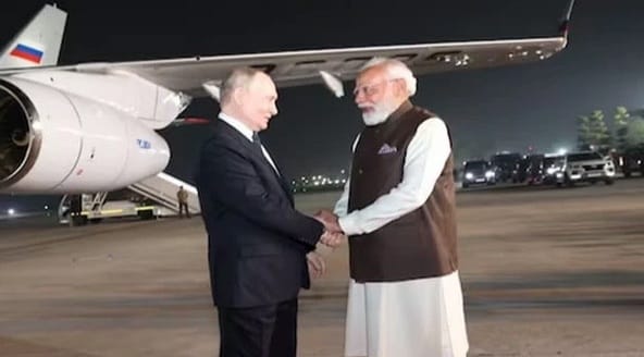 വ്യാഴാഴ്ച വൈകുന്നേരം 6.35ന് ഡല്ഹിയിലെ പാലം അന്താരാഷ്ട്ര വിമാനത്താവളത്തിലെത്തിയ പുടിനെ സ്വീകരിക്കാന് പ്രോട്ടോക്കോള് മറികടന്ന് പ്രധാനമന്ത്രി നരേന്ദ്ര മോദി നേരിട്ടെത്തി.
