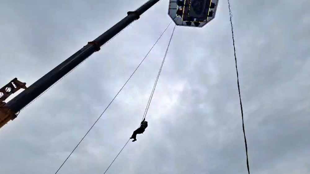 സഞ്ചാരികളെയുമായി ആകാശത്തേക്ക് ഉയര്ന്ന ക്രെയിന് തിരികെയിറങ്ങുന്നതിനായി താഴ്ത്തുന്നതിനു ശ്രമിക്കുമ്പോള് ഫ്യൂസ് പോകുകയായിരുന്നു. ദേവികുളം സബ്കളക്ടറുടെ ഓഫീസില് നിന്നു വിളിച്ചറിയിച്ചതനുസരിച്ച് മൂന്നാറില് നിന്ന് അഗ്നിരക്ഷാ സേനയെത്തി വടം ഉപയോഗിച്ച് മുകളില് കയറിയതിനു ശേഷം കയറേണിയിലൂടെ സഞ്ചാരികളെ താഴെയിറക്കുകയായിരുന്നു. കുട്ടികള് ഭയപ്പെടരുതെന്നു കരുതി അവരോടു കഥകളും മറ്റും പറഞ്ഞ് സമ്മര്ദം അറിയിക്കാതെയായിരുന്നു അഗ്നി രക്ഷാസേനയുടെ പ്രവര്ത്തനം. പഞ്ചായത്ത് ലൈസന്സില്ലാതെയാണ് ഈ കേന്ദ്രം പ്രവര്ത്തിക്കുന്നതെന്നു പറയുന്നു.