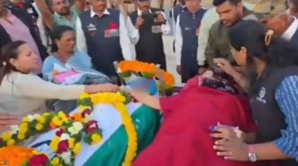 എട്ട് മണിക്കൂർ മുൻപ് ജനിച്ച അവരുടെ നവജാത ശിശുവിനൊപ്പം, സ്ട്രക്ചറിലാണ് ജാദവിനെ അവസാനമായി ഒരുനോക്ക് കാണാൻ ഭാര്യയെ കൊണ്ടുവന്നത്.