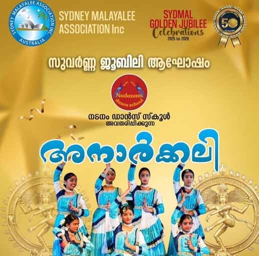 സിഡ്നി: സിഡ്നി മലയാളി അസോസിയേഷ(സിഡ്മല്)ന്റെ സുവര്ണ ജൂബിലി ആഘോഷങ്ങളുടെ ഉദ്ഘാടനത്തോടനുബന്ധിച്ച് നടനം ഡാന്സ് സ്കൂളിന്റെ ഗംഭീര നൃത്താവിഷ്കാരം വേദിയിലെത്തുന്നു. അനാര്ക്കലി എന്നു പേരിട്ടിരിക്കുന്ന നടന വിസ്മയത്തില് നടനം സ്കൂളിന്റെ നര്ത്തകിമാര് മുദ്രകളിലും ചുവടുകളിലുമായി നവരസങ്ങള് കൊണ്ടാടുമ്പോള് ശ്വാസമടക്കി മാത്രമേ കാണികള്ക്കു കണ്ടിരിക്കാനാവൂ. ഒക്ടോബര് നാല് ഞായറാഴ്ച വൈകുന്നേരം അഞ്ചിന് കാസില് ഹില് പയനീയര് തീയറ്ററിലാണ് പരിപാടി നടക്കുന്നതെന്ന് സിഡ്മല് ഭാരവാഹികള് അറിയിച്ചു.