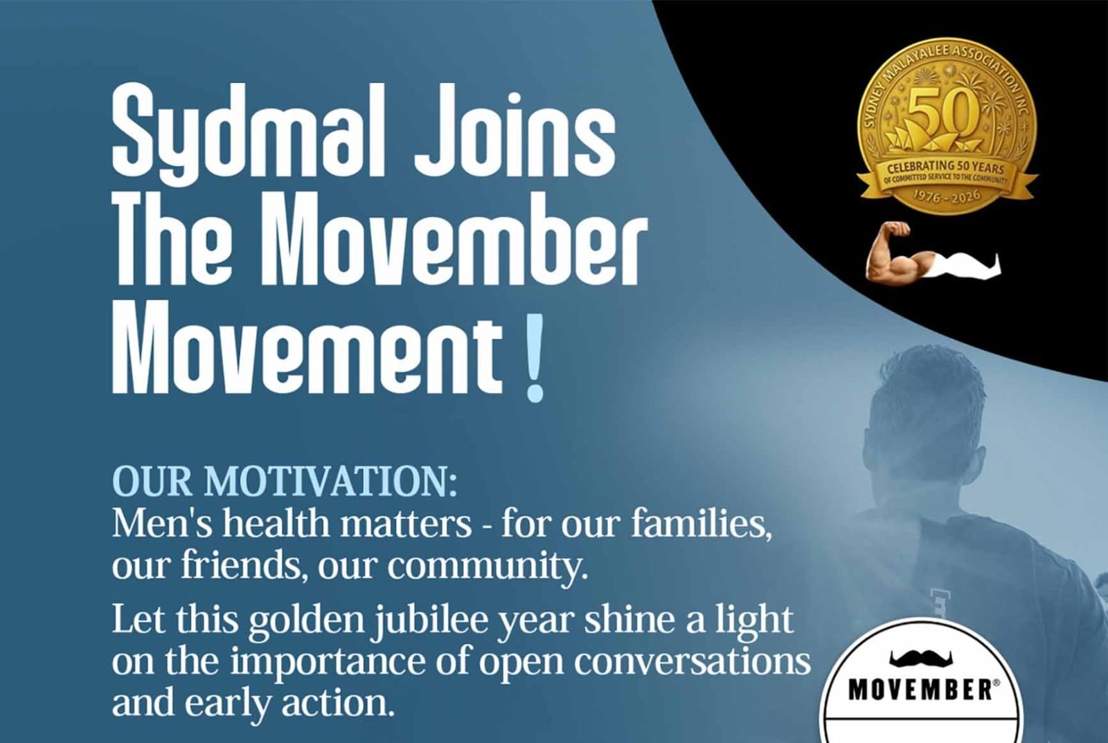 മഹത്തായ പ്രവര്ത്തനങ്ങളിലൂടെ അമ്പതു വര്ഷം പൂര്ത്തിയാക്കുന്ന സിഡ്മല് സുവര്ണ ജൂബിലി ആഘോഷങ്ങളുടെ ഭാഗമായി ലോകവ്യാപക പ്രസ്ഥാനമായ മൊവംബറുമായി കൈകോര്ക്കുന്നു. പുരുഷന്മാരുടെ ആരോഗ്യപ്രശ്നങ്ങളിലും മാനസിക പ്രശ്നങ്ങളിലും പിന്തുണയേകുന്ന പ്രവര്ത്തനങ്ങള്ക്കായി ഈ മാസം മാറ്റിവയ്ക്കും. ലോകത്തൊട്ടാകെ ഓരോ മിനിറ്റിലും ഓരോ പുരുഷന്മാര് വീതം ആത്മഹത്യയില് അഭയം തേടുന്നതായി കണക്കാക്കിയിരിക്കുന്നു. ഇതിലും എത്രയോ അധികം പുരുഷന്മാര് നിശബ്ദമായി സഹിച്ചുകൊണ്ട് ജീവിതം മുന്നോട്ടു കൊണ്ടുപോകുന്നു. പുരുഷന്മാരില് മാത്രം കാണപ്പെടുന്ന പ്രോസ്റ്റേറ്റ് കാന്സര്, ടെസ്റ്റിക്യുലാര് കാന്സര് എന്നിവയും ഏറെ ഗുരുതരമായ പ്രശ്നങ്ങളിലേക്കു വഴി വയ്ക്കുന്നു. ഇതിലേക്കെല്ലാം സമൂഹ ശ്രദ്ധ കൊണ്ടുവരുന്ന പ്രവര്ത്തനങ്ങളില് നവംബര് മാസം മുഴുവന് സിഡ്മല് അംഗങ്ങള് ഏര്പ്പെടുന്നതിനാണ് തീരുമാനം. കൂടുതല് വിവരങ്ങള്ക്ക് ബന്ധപ്പെടുക. അവനീഷ് പണിക്കര്: 0409786837 execom@sydmal.com.au