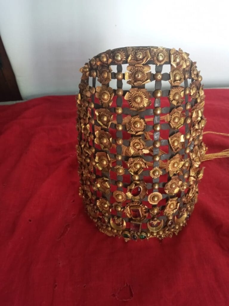 ചെമ്പുതകിടിൽ സ്വർണ്ണപുഷ്പങ്ങൾ പതിപ്പിച്ച് ഇടയ്ക്കിടെ വിവിധ തരം രത്നക്കല്ലുകൾ കൊണ്ട് അലങ്കരിച്ചതാണ് പെൺമുടി. ഇതിന് മുൻവശം മാത്രമേയുള്ളൂ. ആൺമുടി താമരപ്പൂ പോലെ സ്വർണ്ണഇതളുകളോടും സ്വർണ്ണക്കൂമ്പുകളോടു കൂടിയ ചെറിയൊരു ദണ്ഡാണ്. കസവുനേര്യത് കൊണ്ടുള്ള തലയിൽകെട്ടിനുള്ളിൽ ആൺമുടി മുകളിലേയ്ക്ക് വിടർത്തി നിർത്തി കെട്ടിവയ്ക്കാറാണുള്ളത്. യമനിലെ യഹൂദന്മാരും വിവാഹസമയത്ത് ഇതിനോട് സമാനമായ അലങ്കാരമുടികൾ ധരിക്കാറുണ്ട്.