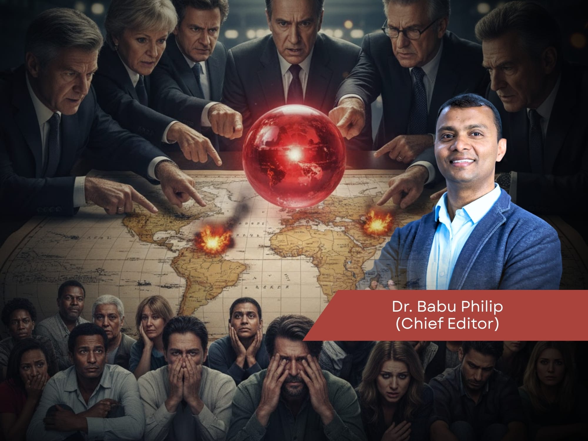 നാം വസിക്കുന്ന ഈ കൊച്ചു ഭൂമി ഇന്ന് ഒരു വലിയ സ്ഫോടനത്തിന്റെ വക്കിലാണ്. അതിർത്തികളും താൽപ്പര്യങ്ങളും തമ്മിലുള്ള സംഘർഷങ്ങൾ ലോകത്തിന്റെ സമാധാനം കെടുത്തുന്നു. പടിഞ്ഞാറ് വെനസ്വേല മുതൽ കിഴക്ക് തായ്വാൻ വരെയും, മഞ്ഞുമൂടിയ ഗ്രീൻലാൻഡ് മുതൽ ആഫ്രിക്കൻ മരുഭൂമികൾ വരെയും യുദ്ധത്തിന്റെ കാഹളം മുഴങ്ങിക്കൊണ്ടിരിക്കുന്നു.